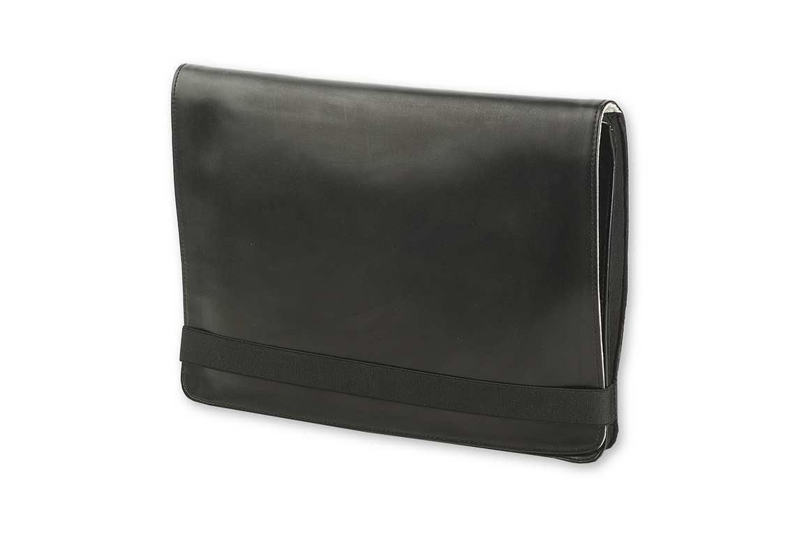 Pouzdro na notebook v imitaci drobně strukturované kůže, doplněné pružným materiálem po stranách. Inspirované designem zápisníků Moleskine, včetně pružné pásky. Uvnitř kontrastní béžová podšívka. Vhodné pro tablety velikosti 13. Rozměry 32,5 x 23 x 3 cm. prečítať celé