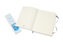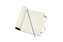 Zápisník s měkkou, ve hřbetu šitou vazbou v kartonových deskách, obepnutý pružnou páskou proti samovolnému otevírání. Zápisník je vybaven pořadačem poznámek, který je vyroben z tkaniny a kartonu, textilní záložkou a letákem s historií MOLESKINE. Gramáž papíru 70 g/m2, neobsahuje kyseliny.