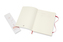 Zápisník s měkkou, ve hřbetu šitou vazbou v kartonových deskách, obepnutý pružnou páskou proti samovolnému otevírání. Zápisník je vybaven pořadačem poznámek, který je vyroben z tkaniny a kartonu, textilní záložkou a letákem s historií MOLESKINE. Gramáž papíru 70 g/m2, neobsahuje kyseliny.