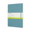 Zápisník s měkkou, ve hřbetu šitou vazbou v kartonových deskách, obepnutý pružnou páskou proti samovolnému otevírání. Zápisník je vybaven pořadačem poznámek, který je vyroben z tkaniny a kartonu, textilní záložkou a letákem s historií MOLESKINE. Gramáž papíru 70 g/m2, neobsahuje kyseliny.