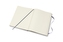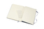 Zápisník s pevnou, ve hřbetu šitou vazbou v kartonových deskách, obepnutý pružnou páskou proti samovolnému otevírání. Zápisník je vybaven pořadačem poznámek, který je vyroben z tkaniny a kartonu, textilní záložkou a letákem s historií Moleskine. Gramáž papíru 70 g/m2, neobsahuje kyseliny.