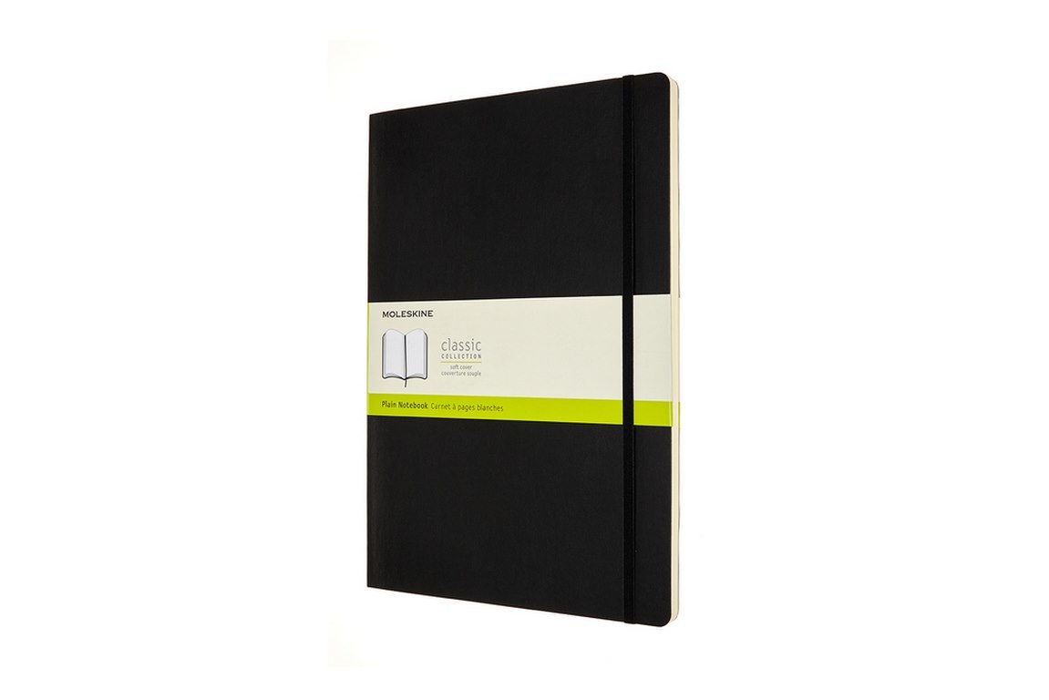 Čistý zápisník velikosti A4 v měkké vazbě. Obepíná ho pružná páska proti samovolnému otevírání. Každý zápisník je vybaven pořadačem poznámek, který je vyroben z tkaniny a kartonu, textilní záložkou a letákem s historií Moleskine. Papír s gramáží 70 g/m2 neobsahuje kyseliny.
