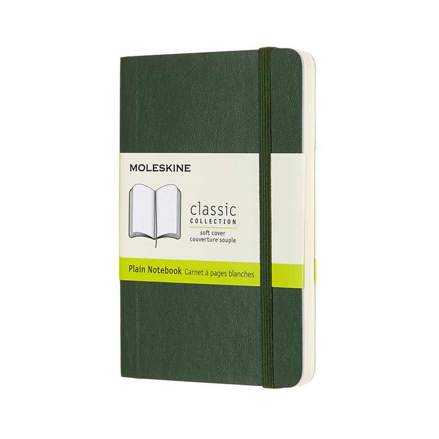 Zelený zápisník s měkkou, ve hřbetu šitou vazbou. Obepíná ho pružná páska proti samovolnému otevírání. Je vybaven pořadačem poznámek, který je vyroben z tkaniny a kartonu, textilní záložkou a letákem s historií Moleskine. Páska, záložka a pořadač poznámek mají stejnou barvu jako zápisník. Papír s gramáží 70 g/m2 neobsahuje kyseliny.