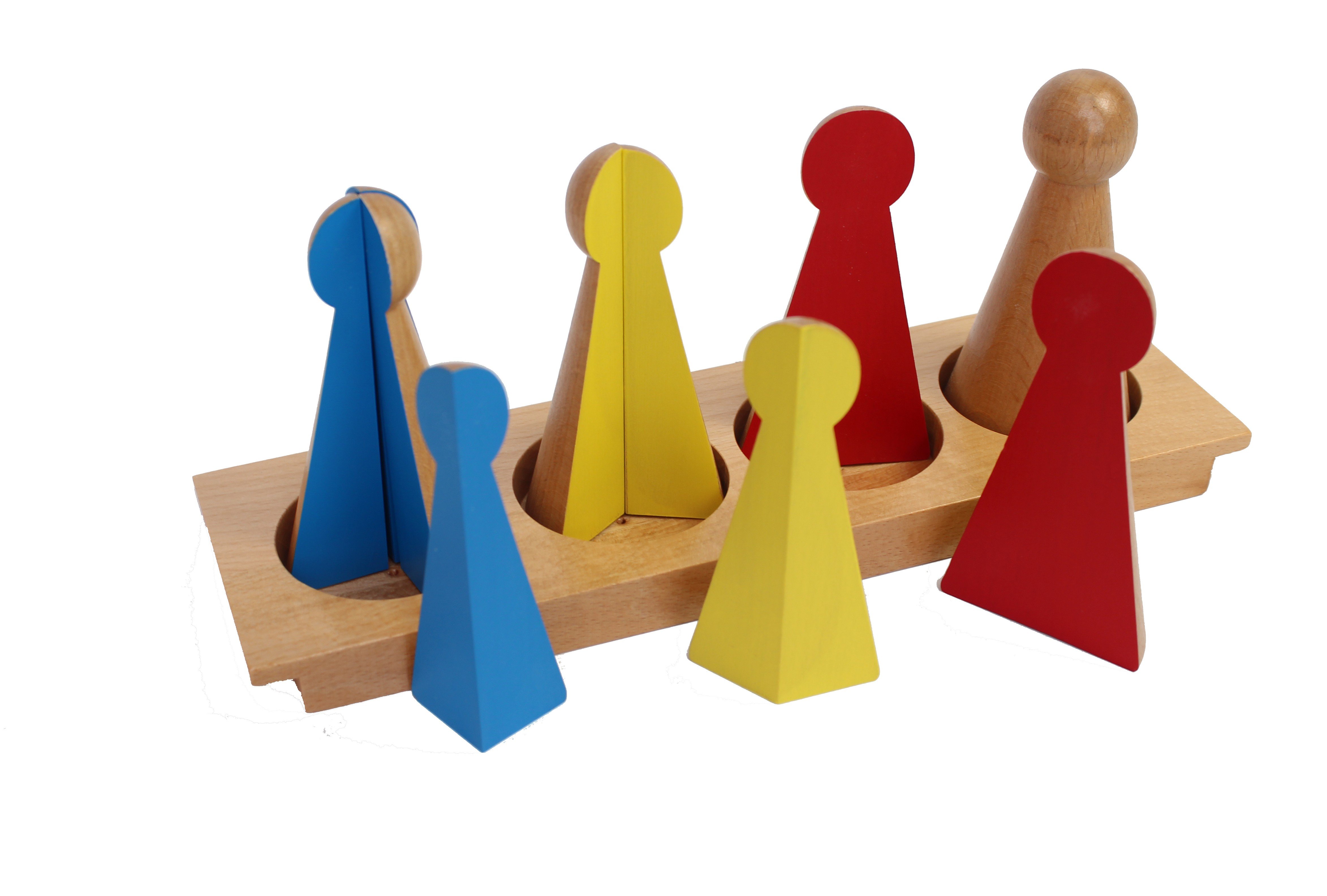 4 velké dřevěné kuželky představují dělitele ve tvaru zlomku v hodnotě 1/1, 1/2, 1/3 a 1/4. prečítať celé