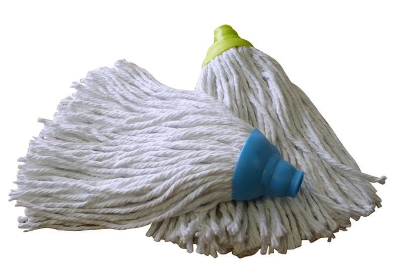 Náhradní mop z proužků z netkaného textilního savého materálu. Obvodové proužky jsou z pevnějšího materiálu pro lepší záběr v rozích. Vrchlík je z umělé hmoty a k tyči se našroubuje hrubým kónickým závitem. Materiál - plast, textil. Mop je dlouhý 30 cm, šířka 10 cm. Délka třásní - 24 cm. Barva - modrá, bílá.