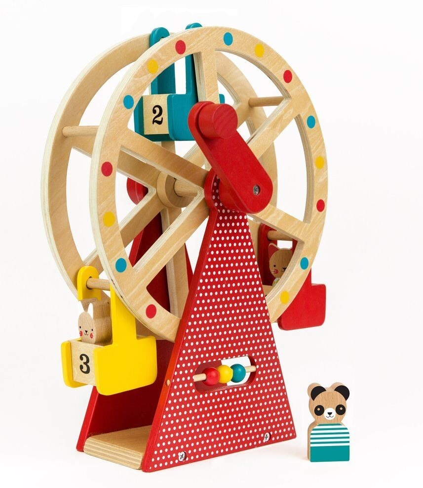 Petit Collage Dřevěné ruské kolo Vezměte své tři zvířecí přátele na projížďku na tomto krásně navrženém a stylovém dřevěném ruském kole.Otočte rukojeť a sledujte, jak se točí velké kolo!Použijte přiložené počítadlo například k počítání jízd.S rotujícím dřevěným ruským kolem se třemi vozíky a...