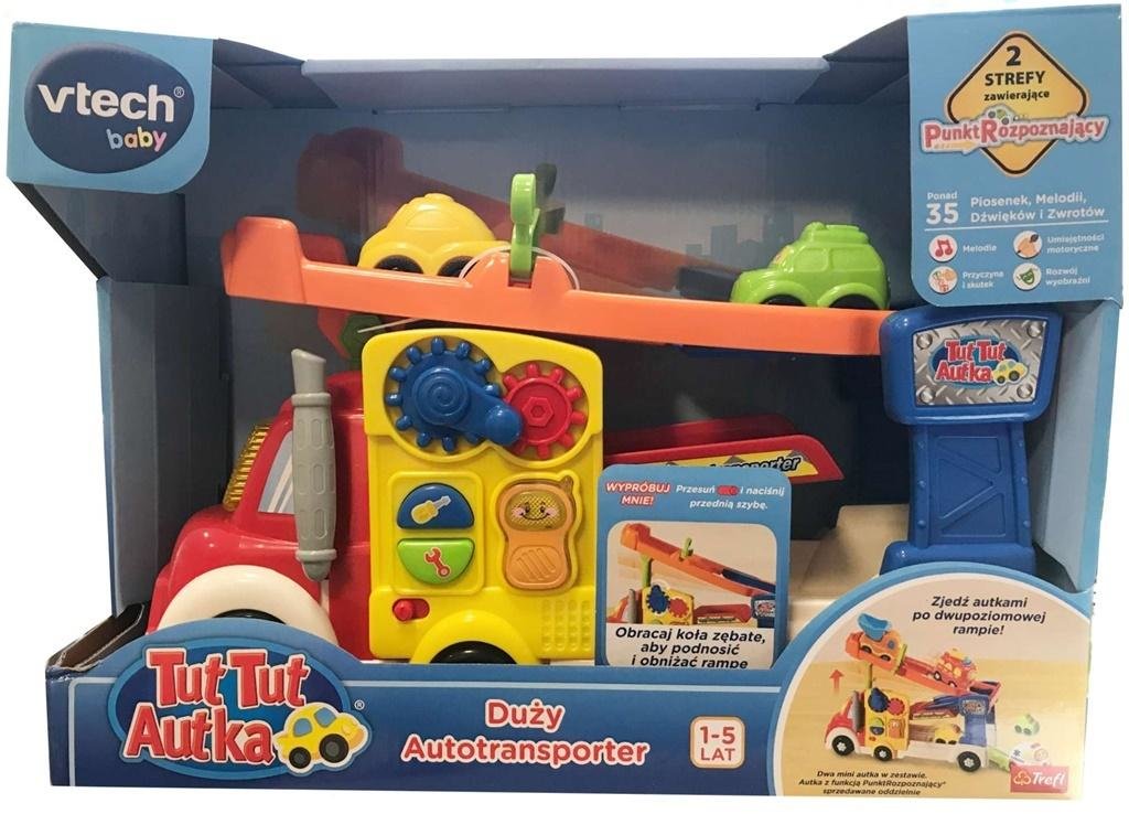 Załaduj swoich przyjaciół z serii TutTut Autka na rampę Dużego Autotransportera i ruszaj na przejażdżkę!Zabawka posiada platformę zjazdową, która umożliwia zjechanie z rampy na sam dół i wyruszenie w dalszą podróż oraz trzy przyciski funkcyjne, które uczą nazw przedmiotów oraz kolorów. W zestawie...