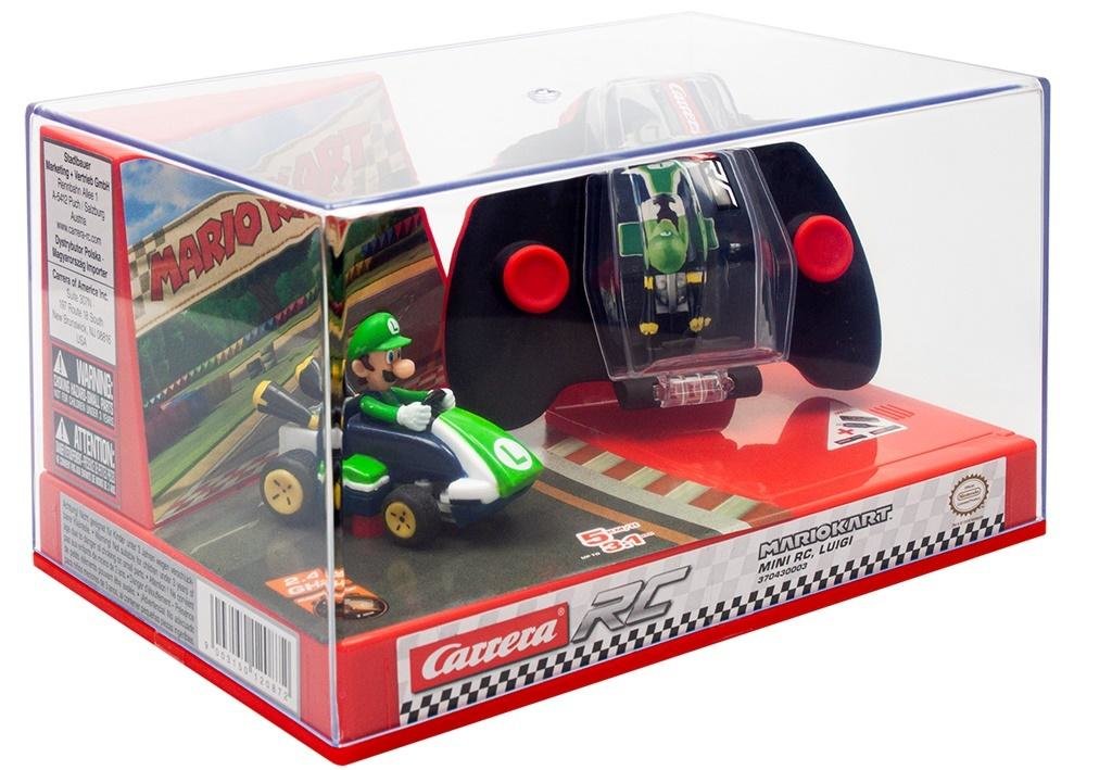Samochód w skali 1:43 Mini RC Nintendo Luigi, kontroler w technologii 2,4 GHz, schowek na auto w kontrolerze, sterowanie - naprzód/wstecz oraz w lewo/prosto/w prawo, kabel do ładowania USB, akumulator LiPo 3.7V 35mAh, czas ładowania: 30 min., czas zabawy: 7 min, prędkość: max. 5 km/h, długość...