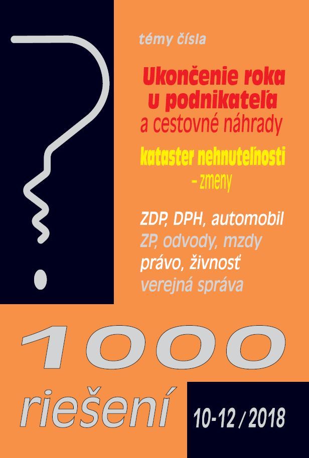 Publikácia obsahuje: Ukončenie roka u podnikateľa a cestovné náhrady, Kataster nehnuteľnosti - zmeny, ZDP, DPH, automobil, ZP, odvody, mzdy, právo, živnosť, verejná správa,... prečítať celé