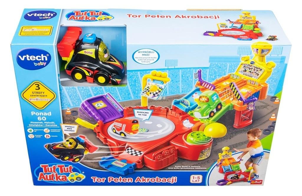 Wykonaj szalone akrobacje na Torze Wyścigowym! Zestaw zawiera podwójną wyrzutnię oraz dwa tory zjazdu dla jeszcze większych wyzwań!Ruchome elementy wzmacniają umiejętności motoryczne podczas zabawy! Zestaw zawiera 3 Punkty Rozpoznające(R) pojazdy oraz Tut Tut Autko(R) Wyścigówkę. Możliwość...