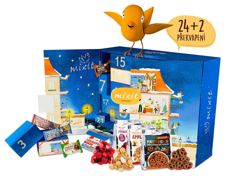 Tento adventní kalendář je letos nejnabitějším kalendářem, jaký Mixit kdy vyrobil. Čeká na vás 26 dobrot a z toho tři úplné novinky! Na Mikuláše a na Štědrý den si otevřete rovnou 2 krabičky s překvapením. Každá vyloupnutá krabička vám udělá radost dvakrát, protože když ji zasunete zpět do...
