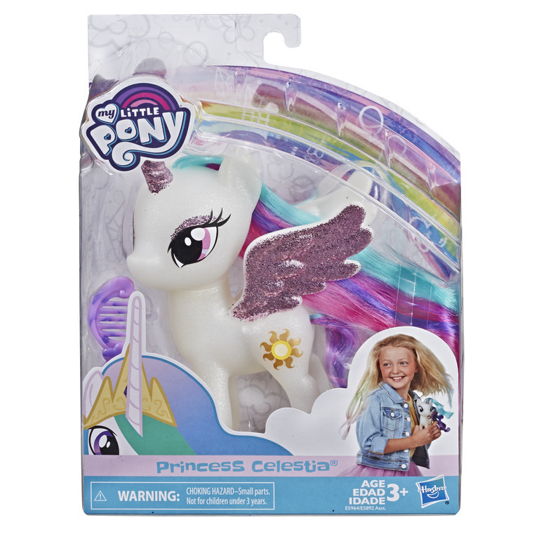 Představujte si zábavné příběhy vedle magických spoluvládců Equestrie s těmito nádheně třpytivými postavami princezen Luny a Celestie (každá se prodává samostatně). Princezny mají krásné rohy a křídla, která jiskří a lesknou se třpytkami! Děti mohou použít hřebínek ke kartáčování dlouhých hřív a ocasů. Jejich barevné vlasy a třpytivé prvky dávají královské princezně Celestii a princezně Luně nádherný, magický vzhled.