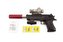 Pistole plast/kov 33cm na vodní kuličky + náboje 9-11mm na baterie se světlem v krabici 34x13x4cm