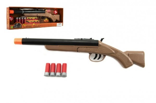 Pistole/Brokovnice lovecká + 4 náboje plast 47cm na baterie se světlem se zvukem v krabici