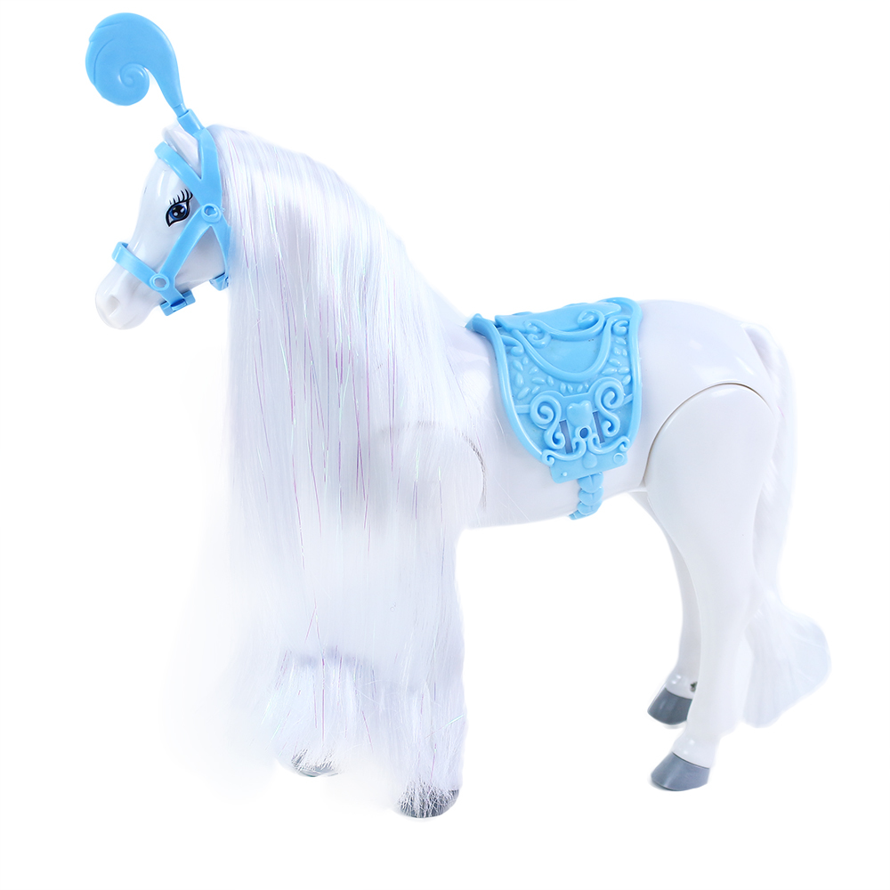 Krásný bílý kůň, který chodí, řehtá a kluše. Má dlouhou hřívu, kterou můžeš česat. Když koně zapneš, začne klusat a vydává reálné zvuky. Vyžaduje 3 ks baterií AA, které nejsou součástí balení. prečítať celé