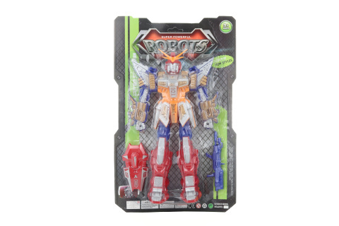 Robot o velikosti cca 28,5 cm .S robotem se dá mechanicky pohybovat rukama a nohama.Po zmáčknutí na zádech začne na hrudi svítit. Provoz na 3 kulaté baterie AG 13 (jsou součástí balení). .Věk 3+ prečítať celé