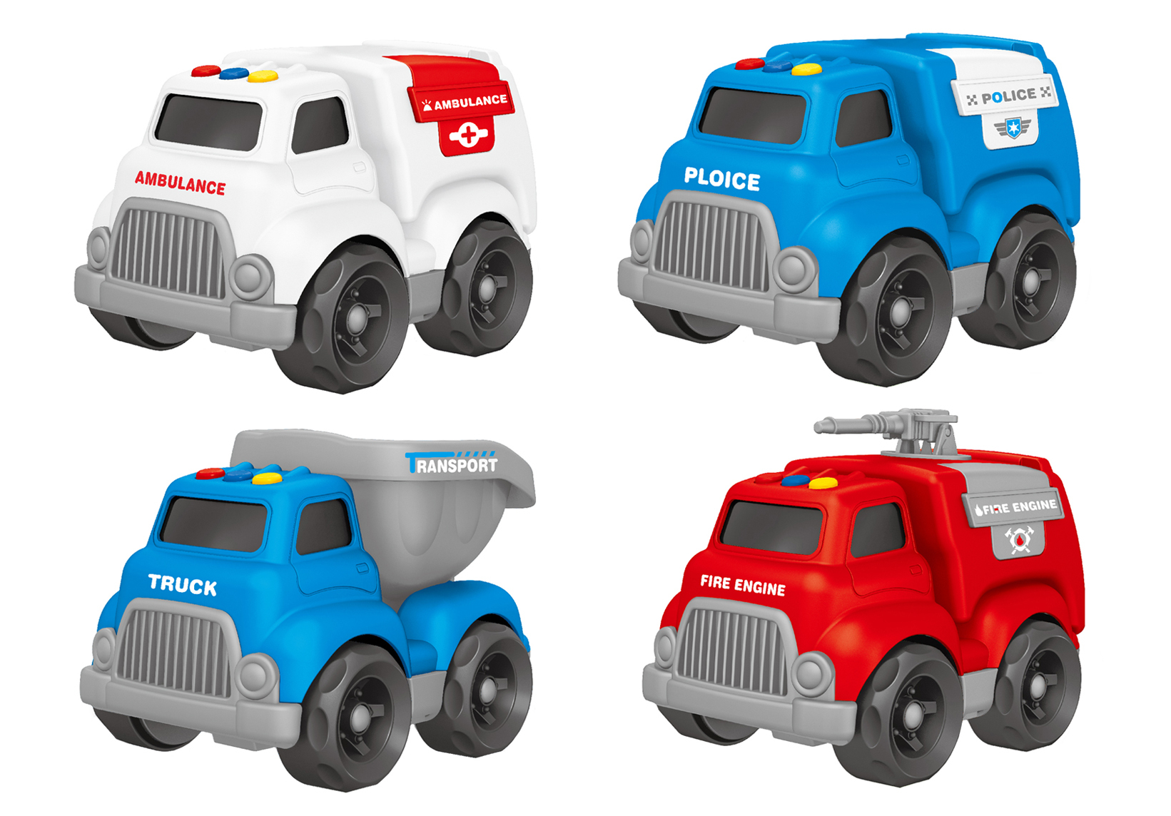Volná kola. Světelné a zvukové efekty - 3 barevné tlačítka na kabině. Otevírací zadní dveře a sklápěcí...