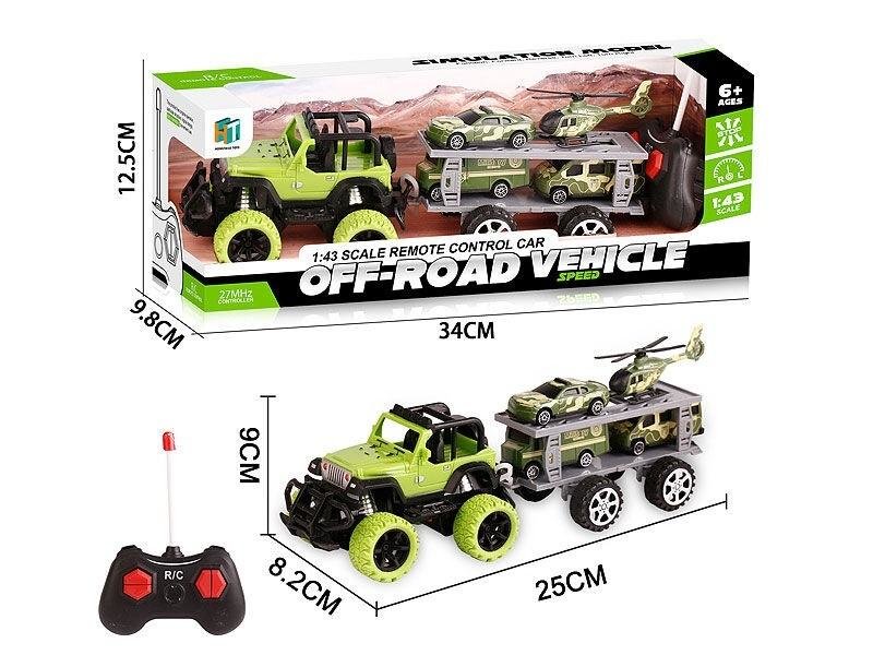 Auto na radio wojskowe na dużych kołach z przyczepą. prečítať celé