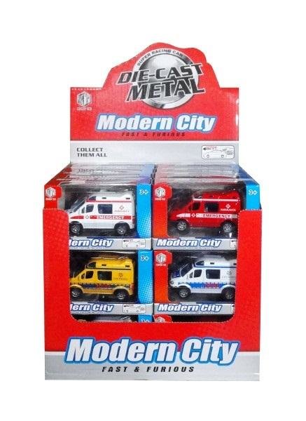 Plastikowo metalowe autka ratunkowe. Zbierz wszystkie modele! Produkt występuje w kilku wersjach kolorystycznych, wybierany losowo. Cena dotyczy jednej sztuki. Zabawka zapakowana w kartonowe opakowanie z przezroczystym okienkiem. Produkt dla dzieci od 3 lat. Podane wymiary stanowią wymiar opakowania.