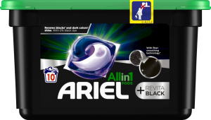 Kapsle na praní Ariel +Revitablack Allin1 pro obnovení zářivosti černé a tmavých barev oblečení pomocí technologie oživení vláken. prečítať celé