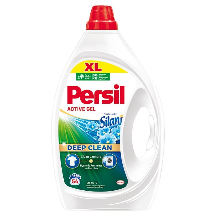 Persil Active Gel Freshness by Silan je špičkový prací gél vytvorený špeciálne pre farebné a farebne stálé prádlo. Vďaka svojej inovatívnej receptúre a jedinečnej kombinácii aktívnych látok rýchlo a účinne odstraňuje aj odolné škvrny už pri nízkych teplotách od 20 °C, čo šetrí energiu a zároveň chráni vaše oblečenie. Navyše preniká hlboko do vlákien, aby zabránil šednutiu a vyblednutiu farieb, čím predlžuje životnosť vášho oblečenia.