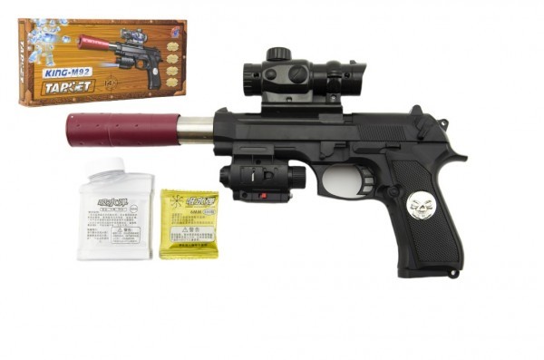 Z pistole se střílí mekkými vodním kuličkami. Kuličky jsou nasáklé vodou, takže nebolí a jsou bezpečné. Vhodné od 3 let. prečítať celé