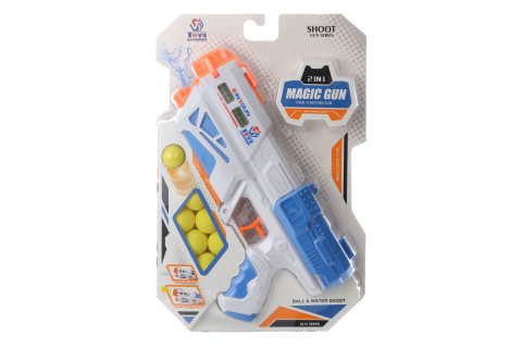 Plastová pistole, která stříká vodu nebo vystřeluje pěnové kuličky. Součástí balení je celkem 7 kuliček. Rozměry pistole cca 27,5 x 14 cm. Rozměry balení cca 35,5 x 24 x 5,5 cm. Věk 3+ prečítať celé