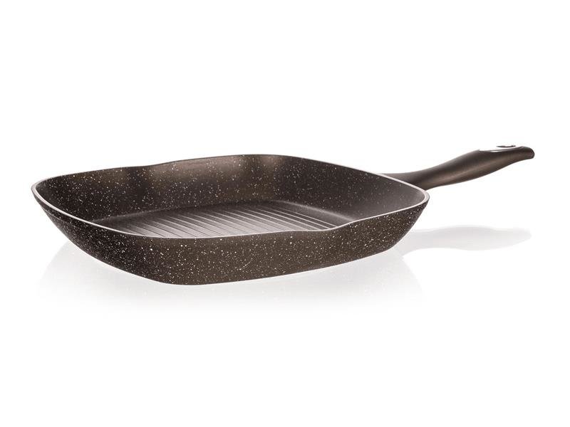 Pánev ideální na steaky má rukojeť Softtouch. Pánev s nepřilnavým povrchem PREMIUM Dark Brown o průměru 28 cm je vhodná na všechny druhy ohřevu včetně indukce. Kameninový oboustranný vzhled.