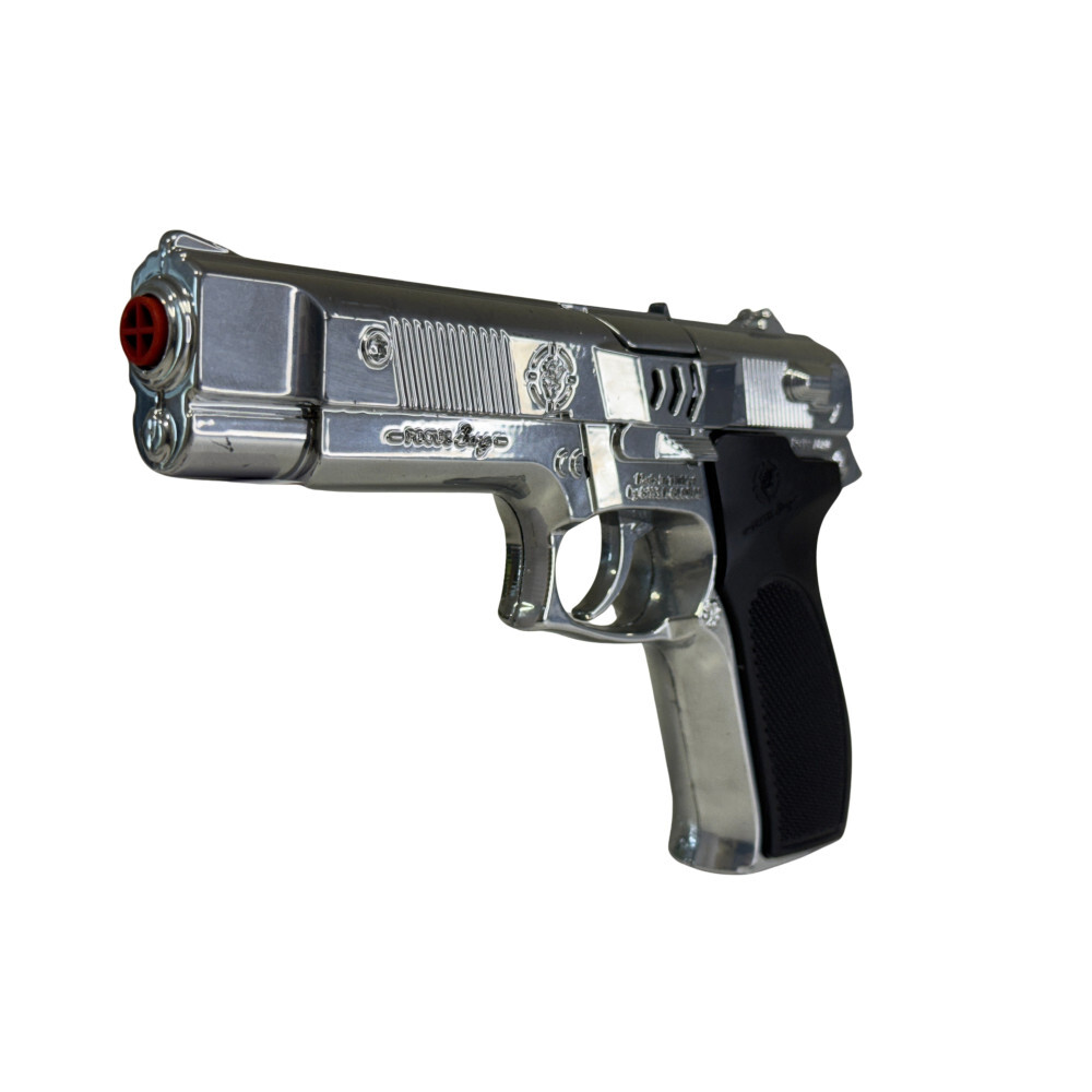 Kovová pistole serie 023 na kapslíkové kotoučky chromová s pouzdrem