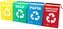- Farby: žltá (plasty), zelená (sklo), modrá (papier), červená (nápojové kartóny)
