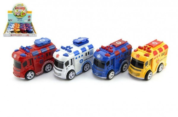 Auto ambulance plast 9cm na setrvačník asst 4 barvy 12ks v boxu 36m+