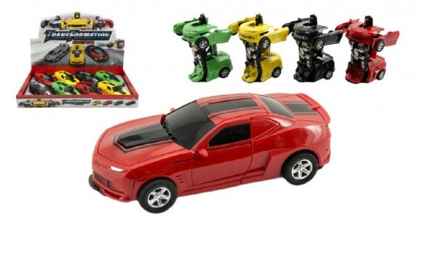 Transformer auto/robot plast 12cm asst 4 barvy na setrvačník 8ks v boxu