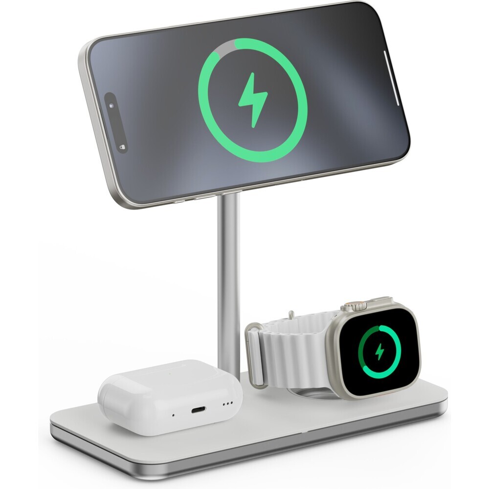 LINQ 3in1 Qi2 Wireless Charging Stand MagSafe nabíječka stříbrná/bílá