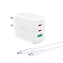 Acefast 2w1 ładowarka sieciowa 2x USB-C / USB-A 65W, PD, QC 3.0, AFC, FCP (zestaw z kablem USB-C 1.2m) biały (A13 white)