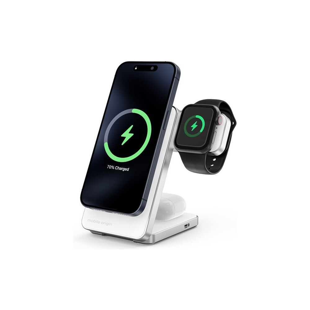 Mobile Origin Qi2 CompactStand 3v1 nabíječka bílá/stříbrná