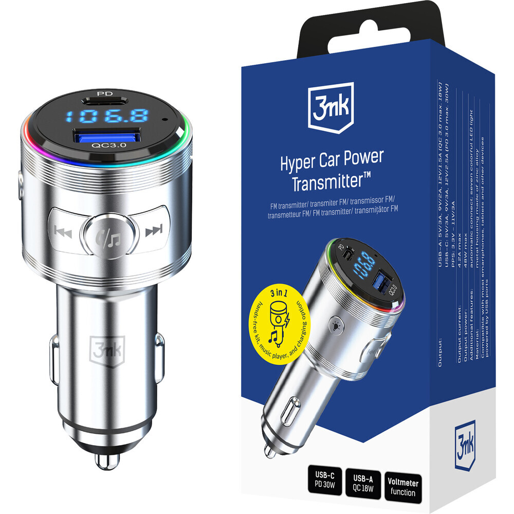 3mk Hyper Car Power Transmitter 48W QC PD PPS USB 1C1A stříbrný