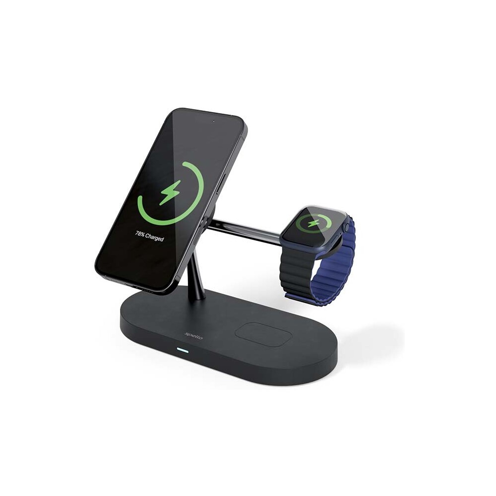 Spello 3v1 bezdrátová nabíječka s podporou uchycení MagSafe černá