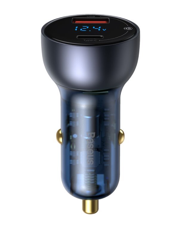 Baseus Particular Digital Display Dual USB nabíječka s výstupem USB a USB-C a LED displejem se stavem nabití akumulátoru ve voze a vysokým výkonem 65W.