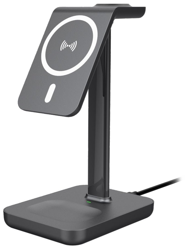 eSTUFF 3in1 Magnetic Wireless Charger - Spacegrey MagSafe compatible charger for iPhone 12 and 13 series, Apple Watch