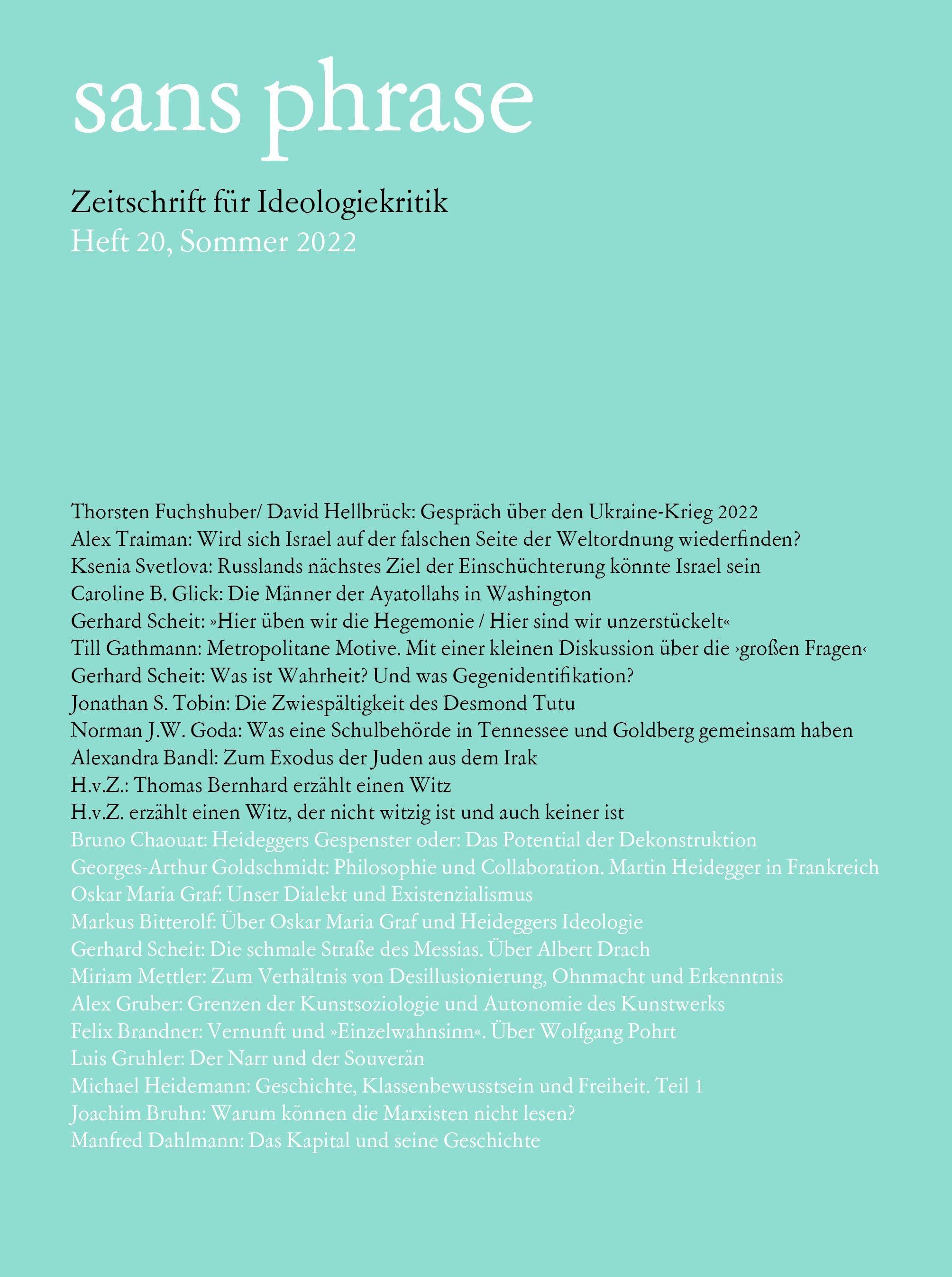 sans phrase - Zeitschrift für Ideologiekritik; Heft 20, Sommer 2022 (německy)