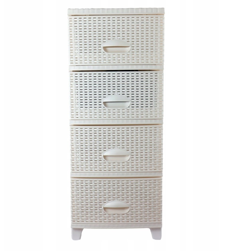 4 patrová komoda vyrobená z plastové elegantní imitace ratanu. Vhodná do koupelny, dětského pokoje. ložnice, garáže, dílny, skladu apod. kamkoli, kde je klíčový pořádek a styl! Zesílená konstrukce – zvýšená stabilita, trvanlivost a odolnost. Pevný materiál – odolný vůči vlhkosti, bez zápachu a...