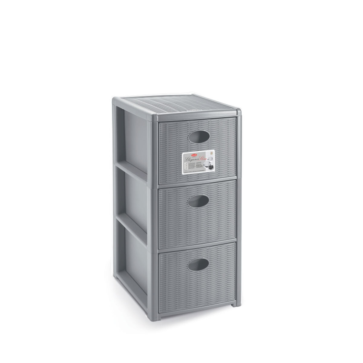 Úložný plastový regál Elegance Slim, 3 zásuvky, šedý