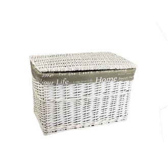 Velice pěkná proutěná truhla s látkou velká. Truhla má rozměry 54 x 35 cm, výšku 36 cm. Barva : bílá, látka - šedá. Materiál : proutí, látka. prečítať celé