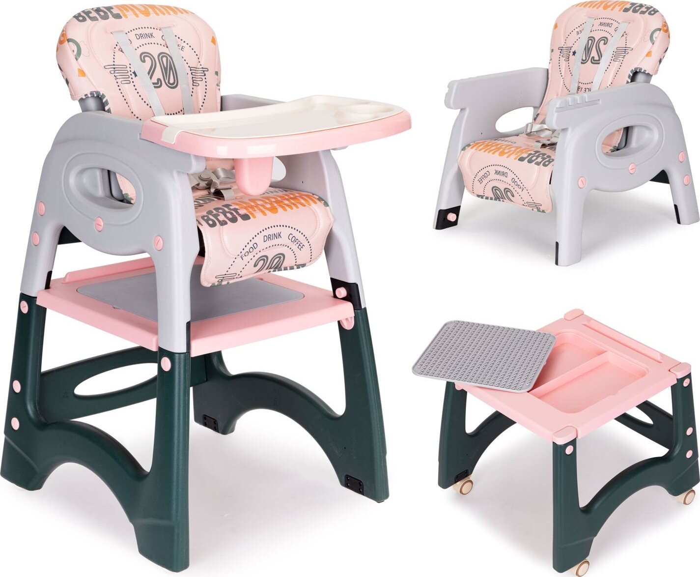 ECOTOYS Jídelní židlička 2v1 růžovo-šedá
