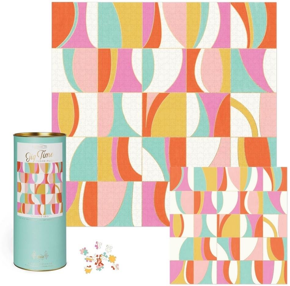 Zestaw 1000 trudnych puzzli Groove Geo' wydane przez DESIGNWORKS INK.Ten niesamowity, geometryczny wzór został dodatkowo pokryty złotą warstwą, tak aby efekt był jeszcze bardziej spektakularny.Opakowane w piękną, dużą tubę ze złoceniami. Do zestawu dołączony został dodatkowy plakat 30,5 x 30,5 cm...