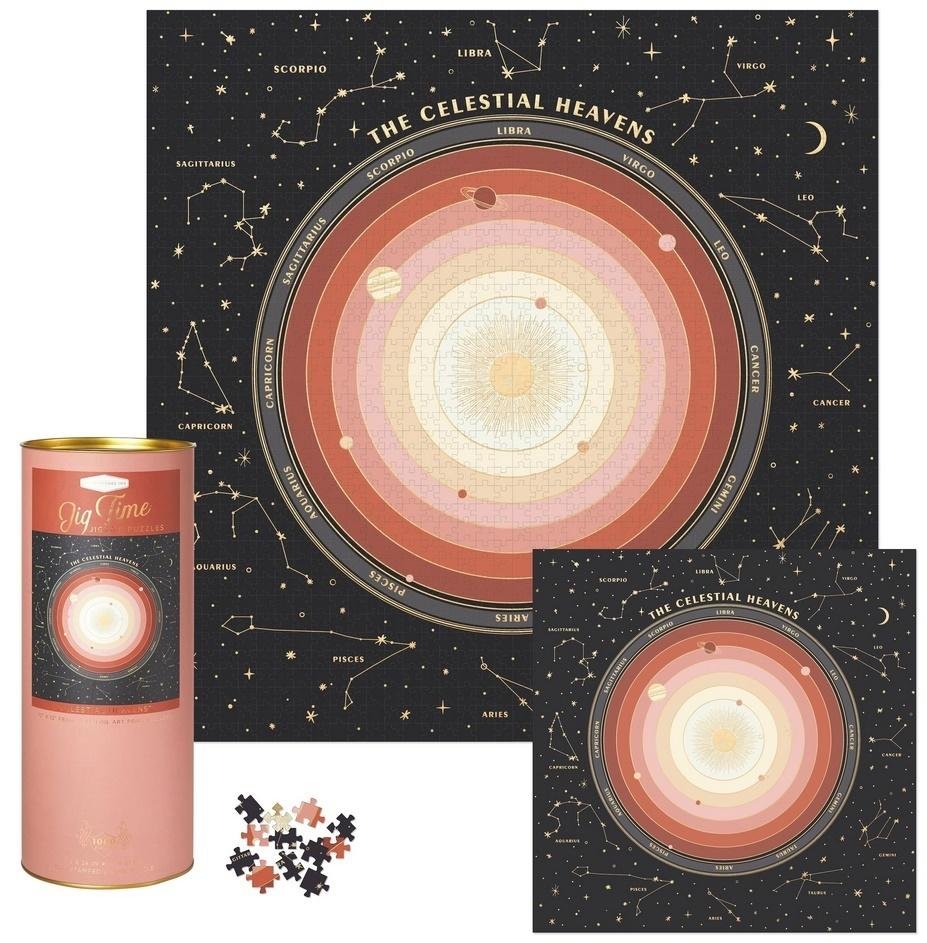 Zestaw 1000 trudnych puzzli Celestial Heavens' wydane przez DESIGNWORKS INK.Ten niesamowity, astronomiczny wzór został dodatkowo pokryty złotą warstwą, tak aby efekt był jeszcze bardziej spektakularny.Opakowane w piękną, dużą tubę ze złoceniami. Do zestawu dołączony został dodatkowy plakat 30,5 x...