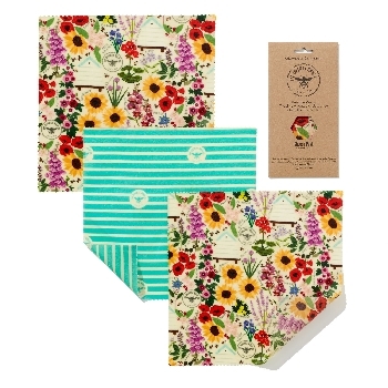 The Beeswax Wrap Opakovaně použitelný obal s včelím voskem na sýry Floral 3 ks