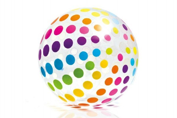 Nafukovací velký míč s barevnými puntíky. Vhodný do vody a nebo na plážový volejbal. Průměr 107 cm. Věk: 3+ prečítať celé