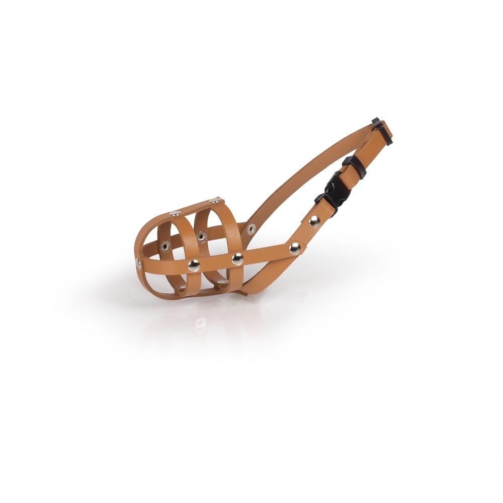 Kožené náhubky s kvalitní umělohmotnou sponou - dobře padnoucí tvar Uvedené plemeno slouží pouze pro orientaci ve velikostech, náhubky doporučujeme vyzkoušet. prečítať celé