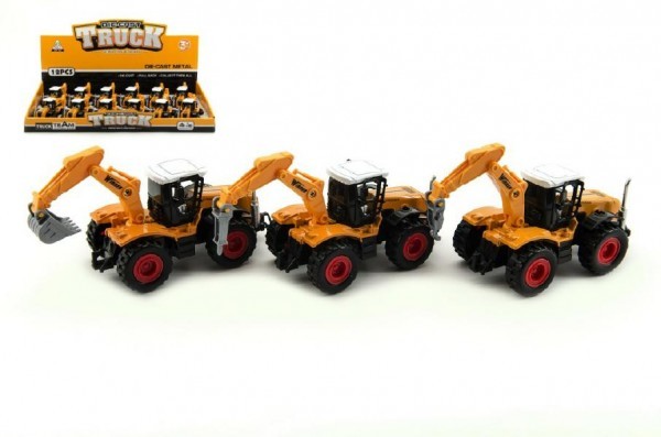 Traktor stavební kov/plast 15cm asst na zpětné natažení 12ks v boxu